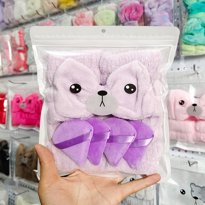 Нүүр угаах, skincare хийх, makeup хийх үед үс болон гар луу ус урсахаас хамгаалах толгойн даруулга + бугуйн ус шингээгч + нүүрний спонж бүхий иж бүрдэл. Зөөлөн, ус сайн шингээдэг материалтай тул арьс арчилгааг илүү тухтай болгоно. ✨
